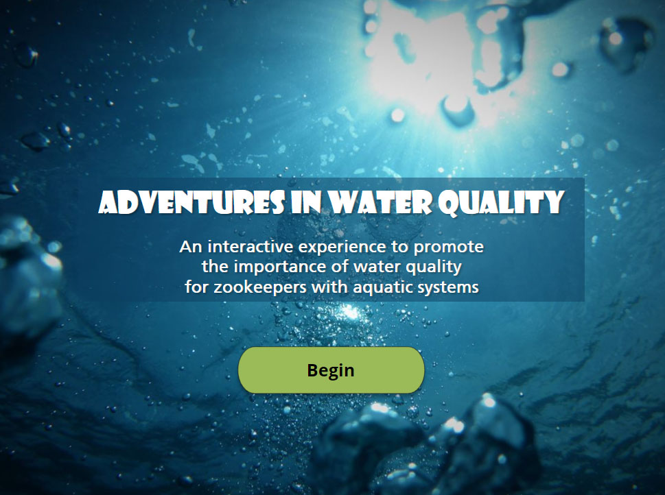 This project, created in Articulate Storyline, is a demonstration of my use of storytelling to captivate, educate, and motivate my audience. In this case, the goal was to motivate zoo keepers to take an active role in maintaining the water quality of their aquatic animal exhibits.