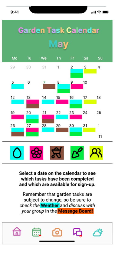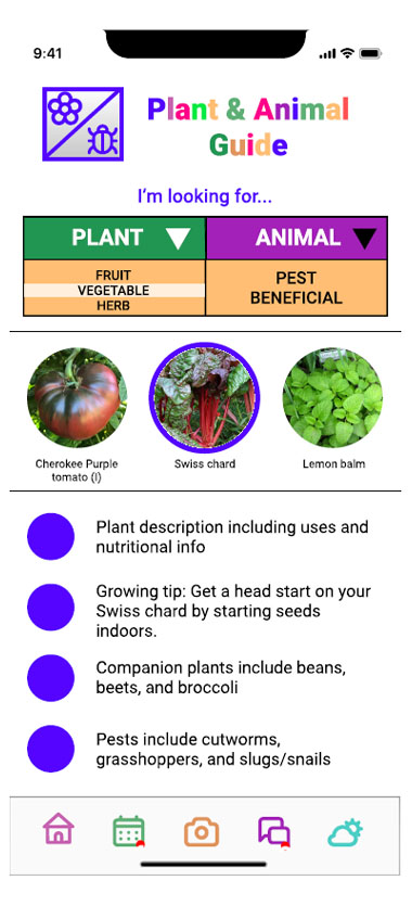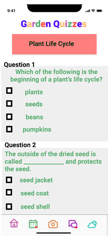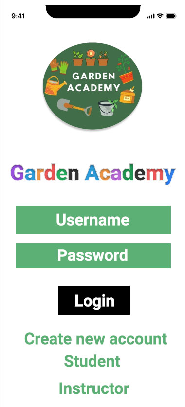 This wireframe, created in Figma, was part of a collaborative effort with Hannah Cook and Kayla Weiglein in the design of a mobile learning app. The Garden Academy app is intended for 4th-6th graders in an urban school with a gardening program. The goal of the app is to keep students engaged from the classroom to the garden, while using the affordances of a mobile device to serve as an in-field tool for planning and data collection.